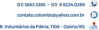 Comercial Colombo R. Voluntários da Pátria, 1106 - Centro - CEP: 95520-000 - Osório/RS Fone: (51) 3663.3385 | Whats: (51) 9 8224.0269 E-mail: contato.colombo@yahoo.com.br